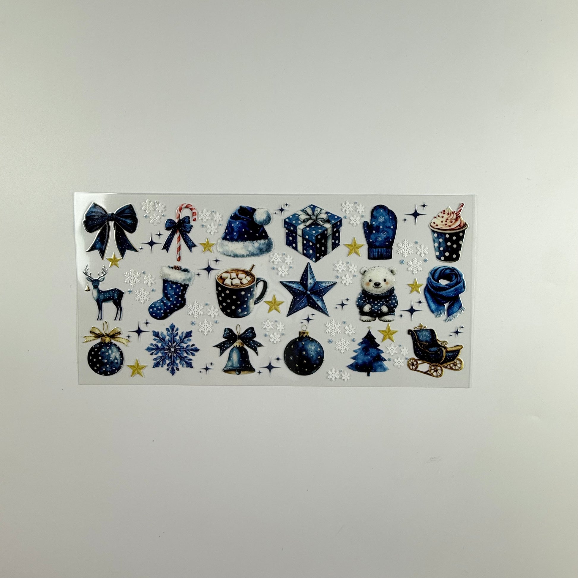 Christmas Stable Blue Bows, Deer, Ornaments